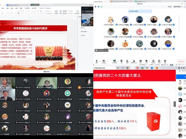 此次班会采用线上形式开展,主要围绕报告中关于过去5年的工作总结和新时代10年的伟大变革、马克思主义中国化时代化新境界、中国式现代化的中国特色和本质要求等重大问题进行学习领悟,对报告中提出的一系列新观点、新论断、新思想、新战略、新要求进行梳理解读,引导广大师生厚植爱国为民情怀,筑牢理想信念根基。