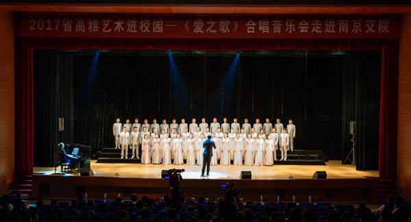 6月14日晚,第十六届校园文化艺术节暨第十一届读书节高雅艺术进校园—《爱之歌》合唱专场音乐会在图书馆报告厅举行。学院党委贾俐俐书记、许正林副书记、纪委高进军书记、周传林副院长、江苏省高速公路经营管理中心及各管理处领导与部分组委会成员共同观看了演出。