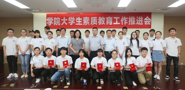 6月20日,学院召开大学生素质教育工作推进会。党委书记贾俐俐,院长张毅,党委副书记许正林,副院长杨益明出席,各院系、大学生素质教育中心、学生工作处、团委、招生就业处负责人及第一期、第二期“明德班”学员参加了会议。会议由副院长杨益明主持。