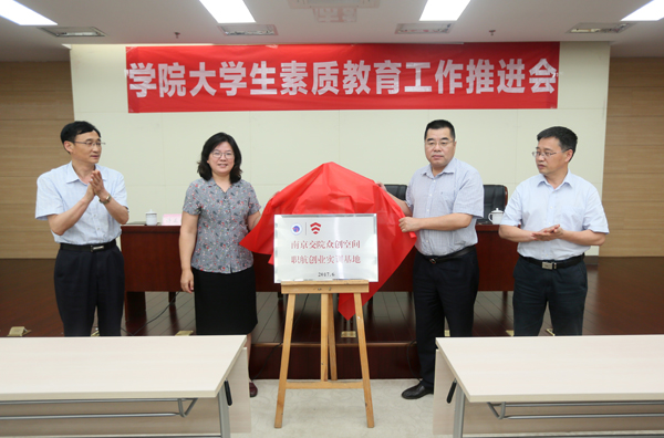 党委书记贾俐俐、学院院长张毅为“南京交院·北京职航大学生众创空间”项目揭牌。会议随后在总结“明德班”工作经验的基础上,就大学生素质教育工作作了推进。