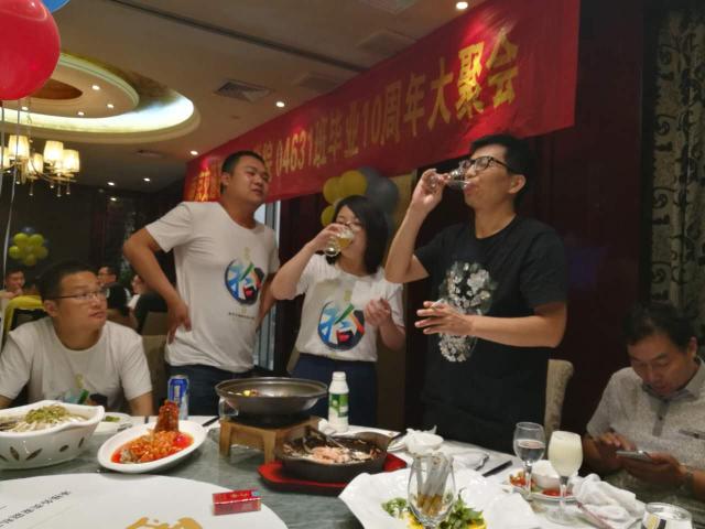 随后晚宴开始,曾经教过我们的老师和系主任都弃忙赶来,大家痛快畅饮,未醉不归。此刻,没有老师没有领导,彼此以兄弟、朋友相称!仿佛十年前一样,玩的疯狂,无拘无束。夜渐深了,却是到了离别的时刻,有些同学因故要先行一步,大家相互拥抱且祝福,泪不禁流。已酣的同学今夜无梦,翌日醒来,群中“兄弟们再见了,有事先走”“同学们,我已经上高铁了”“大家保重,我打车去车站了”……虽只言片语,却耐不是滋味……