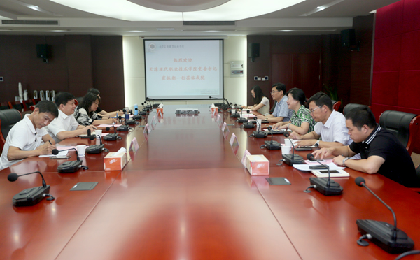 8月18日上午,天津现代职业技术学院党委书记霍振朝一行四人来院访问。党委书记贾俐俐热情接待了来访客人,党委副书记许正林及相关职能部门领导参与了座谈交流。