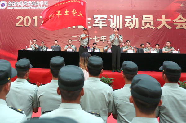 动员大会在庄严的国歌声中拉开帷幕。许正林副书记向2017级军训团授旗并作军训动员讲话。他指出,军训工作是学生的第一课,要打好天下兴亡、匹夫有责的思想仗,打好艰难困苦、玉汝于成的吃苦仗,打好服从纪律、听从指挥的纪律仗。他希望同学们能以时不我待的紧迫感,舍我其谁的责任感,迈好交院生活的第一步,打好交院学习的第一枪。
