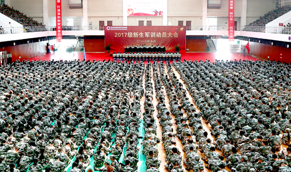 学院2017级新生军事技能训练在动员大会后正式拉开序幕。今年学院有3550余名新生参加军训,共组建1个军训团,下辖6个营,17个连,71个排,在为期14天的过程中,参训新生将学习三大条令教育、军体拳、战术训练、综合训练以及国防教育、安全法制教育等内容,并参加野外拉练、消防应急疏散演练等实践活动。
