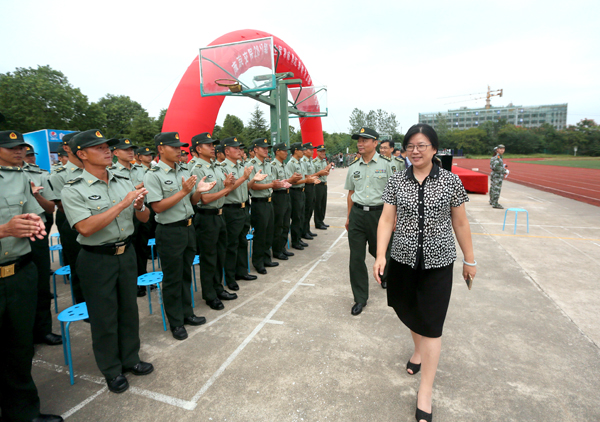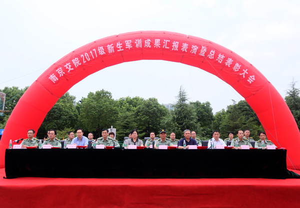 9月29日下午,学院2017级新生军训成果汇报表演暨表彰大会在体育场隆重举行。学院党委书记贾俐俐,新生军训工作领导小组组长、院党委副书记许正林,承训部队领导汤增文,纪委书记高进军,副院长周传林、应海宁、杨益明等领导出席大会并观看了汇报表演。军训工作领导小组、军训团全体成员、承训部队全体教官以及全体参训新生参加。