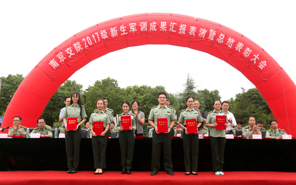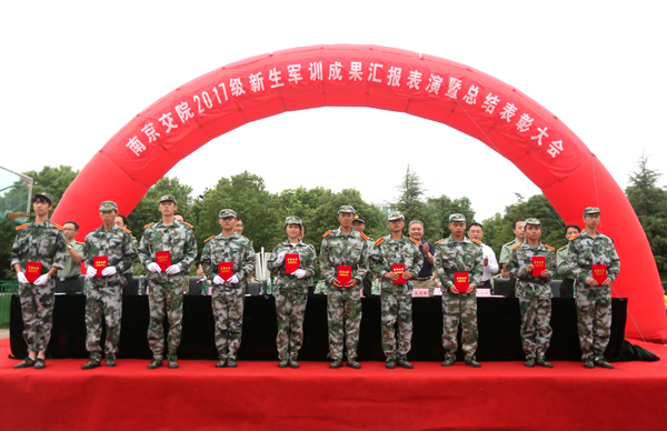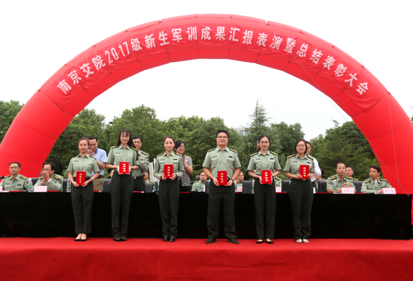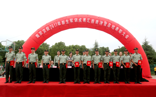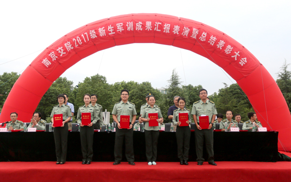 院党委书记贾俐俐、承训部队领导汤增文等主席台就坐的领导,为本次军训工作中涌现出的12个先进集体、12名优秀教官、6名优秀指导员以及184名优秀学员代表颁发了荣誉证书。
