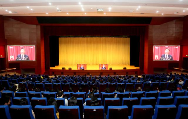中国共产党第十九次全国代表大会于10月18日上午9时整在北京人民大会堂隆重开幕。这是在全面建成小康社会决胜阶段、中国特色社会主义进入新时代的关键时期召开的一次十分重要的大会。学院组织全体教职员工,学生代表、离退休教工代表齐聚图书馆报告厅,集中收看开幕会盛况,认真聆听习近平总书记代表十八届中央委员会向大会所作的报告。