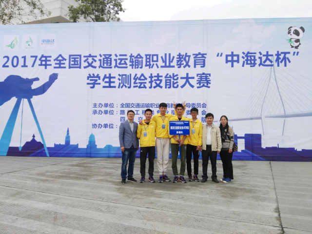“2017年全国交通运输职业教育‘中海达杯’学生测绘技能大赛”于近日在四川交通职业技术学院举行。本次竞赛设有“道路中线施工放样”和“1:500数字测图”两个分赛项。来自全国26个省市自治区,42所院校,73支代表队同台竞技。经过三天的激烈角逐,由路桥与港航工程学院沈江龙、姚聪、黄振杨、陈默然四名同学组成的南京交通职业技术学院代表队(指导老师赵远、辛建丽)荣获高职组团体二等奖、道路中线施工放样单项一等奖、1:500数字测图单项二等奖的好成绩。
