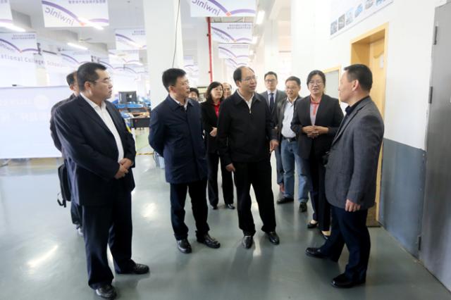11月4日上午,江苏省教育厅副厅长王成斌,江苏省交通运输厅副厅长金凌,全国机械职业教育教学指导委员会秘书长、机械工业教育发展中心副主任郑丽梅,省交通运输厅政治处副处长叶坚,比亚迪汽车工业有限公司高级经理、比亚迪培训学院院长陈旭明,行云新能科技(深圳)有限公司总经理吴立新一行,在出席2017全国机械行业职业院校技能大赛“行云新能杯”纯电动汽车技术服务大赛开幕式后,在院党委书记贾俐俐、院长张毅、副院长杨益明陪同下,视察参观了学院。