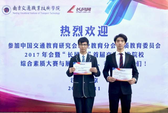 11月11日,在“长风杯”全国交通职业院校大学生综合素质大赛中,我院学子赵杭涛、缪诗源发挥出色,学院喜获团体一等奖(指导教师:王文婷 王利平)。