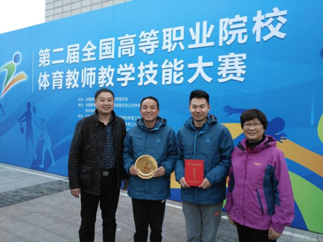 11月23日至27日,由全国高等学校体育教学指导委员会主办的“第二届全国高等职业院校体育教师教学技能大赛”在苏州市职业大学隆重举行,来自全国32个省、市、自治区、建设兵团的252名体育教师同台竞技、展示风采。学院两名教师作为江苏省代表团成员参加了大赛。史立峰老师获得教学设计与实践比赛一等奖、技能与素质比赛二等奖;张旭老师获得教学设计与实践比赛二等奖、技能与素质比赛二等奖。