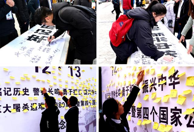 南京大屠杀是人类历史黑暗的一页,日本侵略者灭绝人性的兽行给中国人民带来了深重灾难,给中华民族留下了无法磨灭的痛苦记忆。“哀黎庶无辜灾难殷殷 思捐躯洒血浩气干云”,面对日本帝国主义的铁蹄,中国军民同仇敌忾、共御外侮,取得了抗战的伟大胜利。师生代表纷纷表示,悼念活动是一次深刻的爱国主义教育,历史观、价值观教育。中国人民遭受的灾难和屈辱永远不能忘记,中华民族英勇不屈自强不息的精神要代代传承,正义与和平是我们永远的追求。