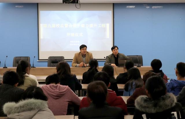 自管会骨干能力培训。为培养学生自我管理,服务大众等能力。学工处相继于11月30日、12月13日晚开展了自管会骨干能力提升工程培训讲座。党委组织部王道峰部长、汽车工程学院王黛碧副书记分别从理想信念、人际沟通的角度出发,使在座的同学们了解了应如提升自身素质,端正服务理念,创新服务内容,提升服务效能。