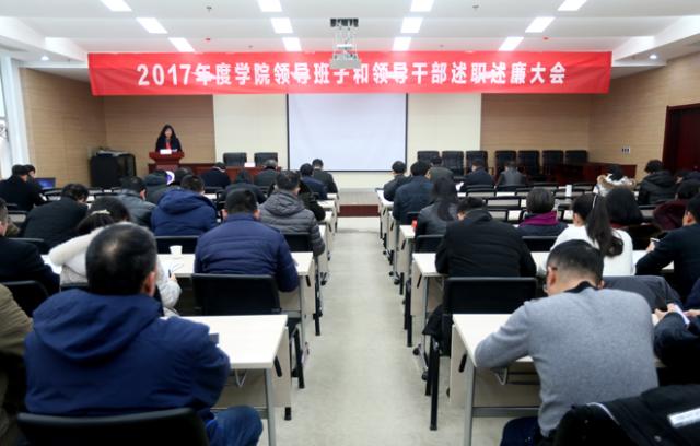 根据省委组织部和省交通运输厅有关文件精神,1月18日下午,学院召开2017年度学院领导班子和领导干部述职述廉大会。全体院领导,全体中层干部,老同志代表,民主党派代表,具有副高以上专业技术职务的教师代表和二级单位(部门)内设机构负责同志代表近130人参加会议并进行民主评议。会议由党委书记贾俐俐主持。