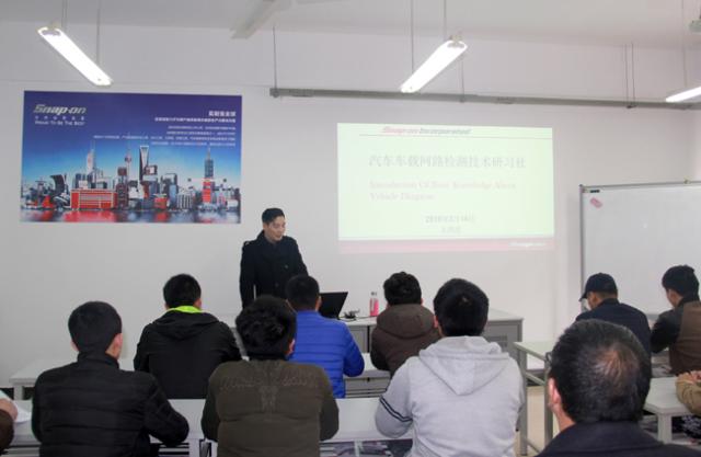 合作签订仪式结束后,实耐宝工具仪器(昆山)有限公司产品开发经理王洪波,为实耐宝-南京交院培训中心先期成立的汽车车载网路检测技术研习社全体学员讲授了第一课。