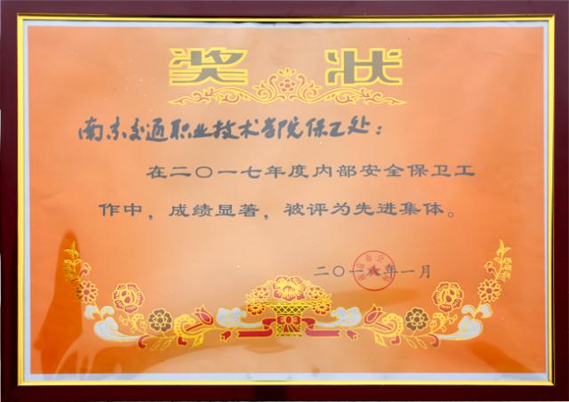 近日,南京市公安局发布《关于表彰2017年度全市内保系统保卫组织先进集体和先进个人的决定》,学院保卫处荣获“2017年度南京市公安局内保先进集体”荣誉称号,祁国新、戴正春两位同志荣获“2017年度先进个人”荣誉称号。