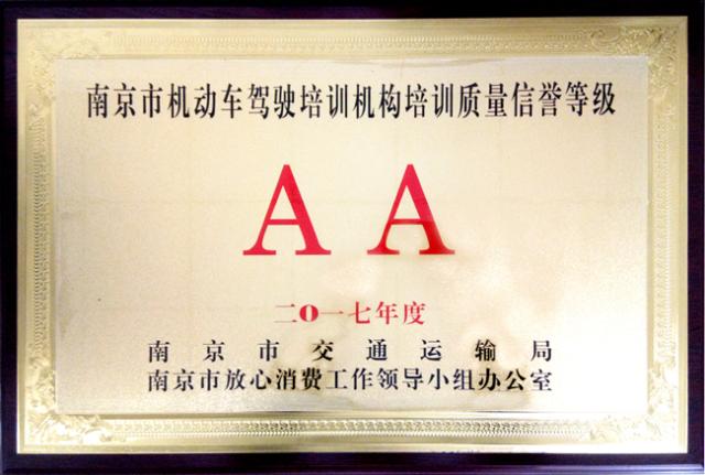 近日,从南京市交通运输局和南京市放心消费工作领导小组办公室传来喜讯,南京交院驾驶培训有限公司被授予2017年度“南京市机动车驾驶培训机构培训质量信誉等级AA”荣誉称号。这是公司再次蝉联AA级荣誉称号,并在AA级信誉等级同等规模驾校中名列前茅。