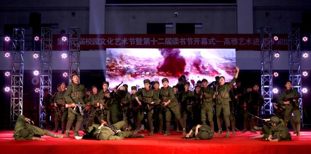 4月11日晚,学院第十七届校园文化艺术节暨第十二届读书节在行健馆隆重开幕。本届艺术节暨读书节以“艺术丰润人生 阅读滋养心灵”为主题,江苏战旗军旅文工团为全院师生上演了《不忘初心 牢记使命》主题教育演出。艺术节暨读书节组委会全体成员与3000余名师生共同观看了演出。