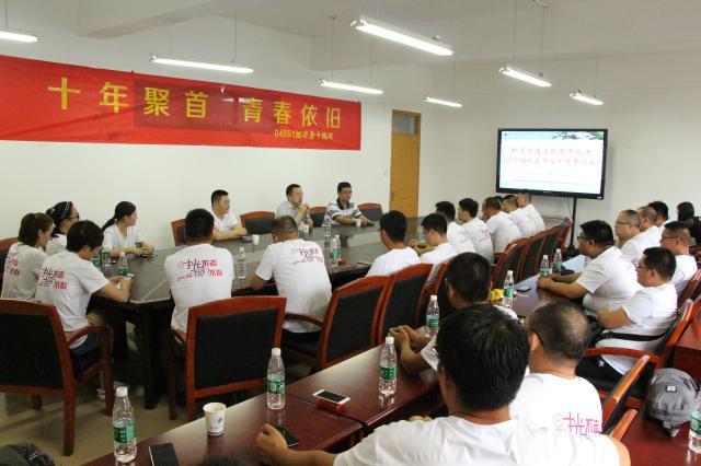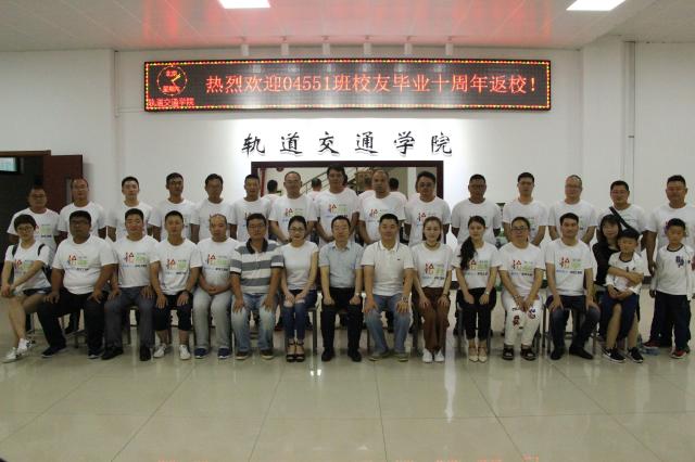 2018年6月9日上午,明志楼304教室里欢声笑语,轨道交通学院路桥施工技术/工程机械专业04551班校友相约回到母校,举行毕业十年同学聚会,追寻往日美好,畅叙昔日友情。轨道交通学院米永胜院长、人文艺术系党总支戴广东副书记、学院周昊明老师、王克俭老师参加了活动。