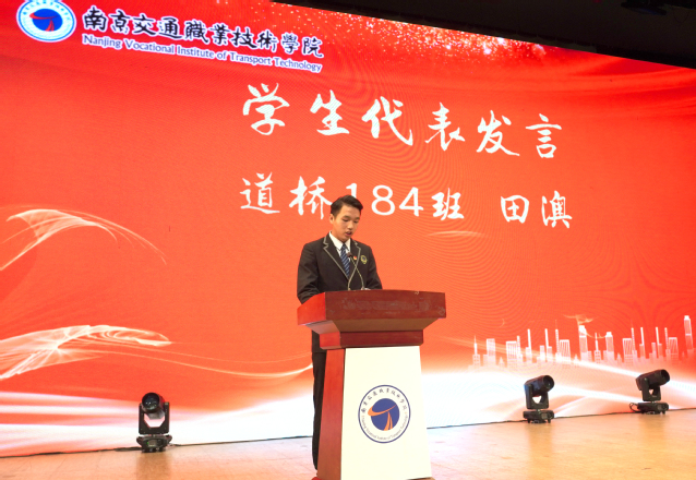 校友代表、江苏汽车技师学院副院长、8111班蒋志伟同学,徐州公路工程总公司总经理、9023班周明利同学先后发言,追忆母校学习经历,讲述投身交通建设奋斗征程,深情表达对母校培养的感恩和祝福。道桥184班田澳同学,7930班班主任徐爱萍老师分别代表在校生和教师发言。