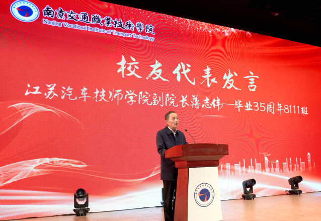 校友代表、江苏汽车技师学院副院长、8111班蒋志伟同学发言