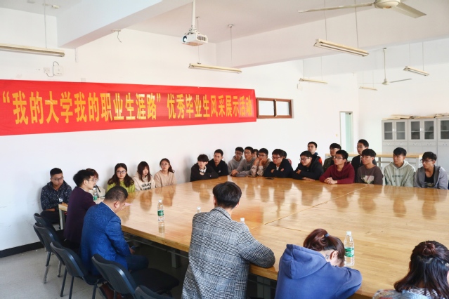 下午一点半,陈晋中书记带领校友们参观学院的室内实训室,介绍了近年来学院在专业建设、实训室建设、校企合作等方面所取得的成绩。参观完毕举行了校友座谈,校友们向学院领导、老师汇报了自己近年来的工作、生活情况,并对母校的发展提出自己的意见建议。陈书记表示,希望校友们常回家看看,加强和母校的联系,共享校友资源。随后举行了校友与在校学生的对话沙龙活动,交流会以“我的大学,我的职业生涯路”为主题,邀请06级的校友——江苏鸿基节能新技术股份有限公司的总经理李伟和江苏通州基础工程有限公司的总经理助理兼项目经理单小伟与在校学生进行深入对话,使学生们对未来的职业生涯路有了更加明确的规划与设想。