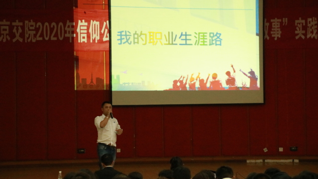 10月28日下午,汽车工程学院优秀毕业生代表张鹏程回到母校,在大学生活动中心,为三百余名在校生作了“青春激情向上”的主题报告。