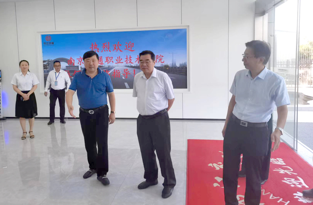 在邗江交通工程建设有限公司,董事长丁寿文校友向母校领导介绍了企业建设发展情况,并共同就交通产业发展前景、交通工程相关专业人才需求、拓展产教融合新平台新途径进行了讨论交流。