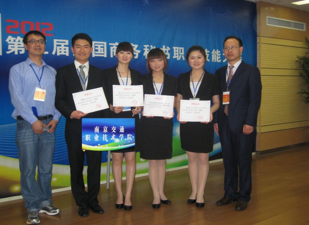 第一届秘书(商务)职业技能大赛2010124-5日在南京城市职业学院举行。南京交通职业技术学院人文艺术系文秘专业(商务文秘方向)选派的代表队由09721宛燕、龚雪、徐荔、高蕙琳四位同学组成,李前平、张运全担任指导教师。参赛队伍与来自全国24所本专科院校代表队同台竞技。经过激烈角逐,我院4名学子发挥出色,喜创佳绩。宛燕同学荣获一等奖,龚雪、徐荔同学获得二等奖,高蕙琳同学获得三等奖,宛燕同学与龚雪同学还同时获得书法单项技能竞赛三等奖。南京交通职业技术学院代表队也勇夺“团体二等奖”的殊荣。大赛吸引了南京各主流媒体的关注,《扬子晚报》125A1版(头版头条)以《全国24所高校代表队齐聚南京“考秘书”》为题予以报道。
