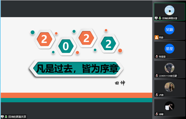 2022年11月7日,电子信息工程学院在腾讯会议举行了“我的大学,我的职业生涯路”优秀校友线上报告会。报告会邀请2016级优秀校友田坤主讲,会议由徐敏老师主持,共计700余人参加。