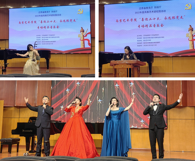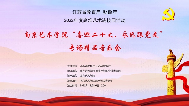 12月16日下午15:00,第二十一届校园文化艺术节高雅艺术进校园—“喜迎二十大 永远跟党走”南京艺术学院专场精品音乐会在线上直播举行。