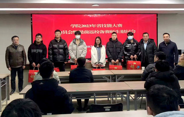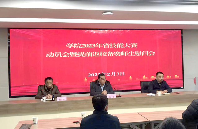 2月3日上午,学院在弘毅楼223会议室召开了2023年省职业技能竞赛动员会暨提前返校备赛师生慰问会。自大年初七开始参加省职业技能竞赛选手和指导老师们自发的陆续返校,截止今天返校师生120余名。学院领导高度肯定师生们主动放弃休息投身大赛的热情,要求召开会议进行大赛动员并慰问备赛的师生。