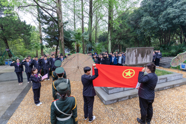 师生们在纪念碑前聆听了菊花台九烈士的英雄事迹并默哀献花,青马班代表发出倡议,号召全体青年不忘历史,铭记先烈功勋,弘扬爱国爱民精神。最后全体师生在纪念碑前重温了入团誓词。