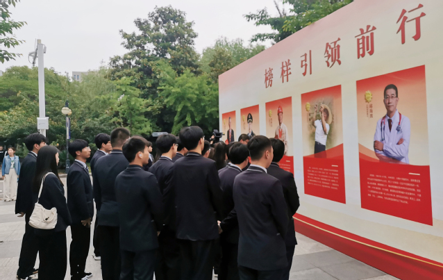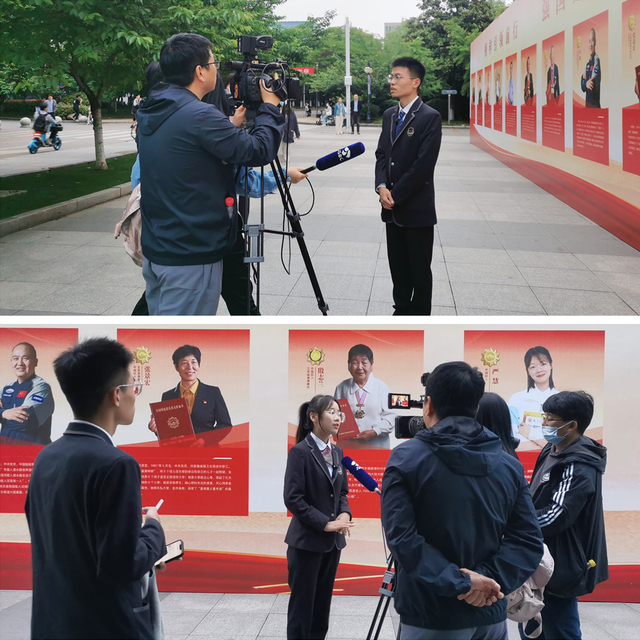 活动开始前,同学们在10名道德模范的事迹展板前驻足,了解他们的感人事迹,并接受了江苏卫视采访,纷纷表示要立志学习优秀榜样事迹,汲取前行力量,努力学习、锤炼本领,投身强国伟业。