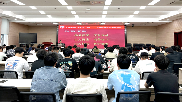 在全党上下深入开展学习贯彻习近平新时代中国特色社会主义思想主题教育之际,为大力弘扬“两弹一星”精神,培育新时代大学生家国情怀和爱国主义精神,5月25日下午,学院特邀“两弹一星”宣讲团成员王定放少将作专题讲座。学生工作处相关负责同志和100余名2022级全体班长参与活动。