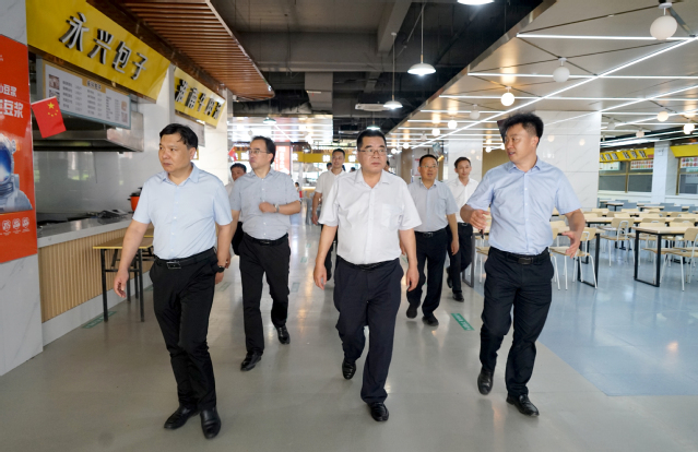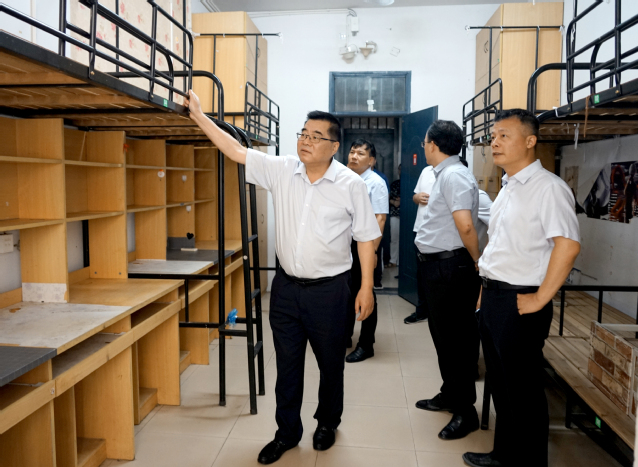 张毅书记、王道峰院长等一行先后来到学生公寓K组团、食堂、“一站式”服务中心、西大门等处,就新建学生公寓交付、餐饮保障、“一站式”服务中心建设及校门安保等方面逐一进行了细致检查,并认真听取相关处室关于新学期准备工作的情况汇报,对检查发现的问题提出具体整改意见。