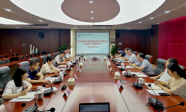 9月13日上午,江苏现代路桥有限责任公司董事长袁守国、总经理孟令国一行7人来院考察调研。学院党委书记张毅、副院长谢剑康热情接待了来宾,路桥与港航工程学院负责人及相关人员参加了会谈。