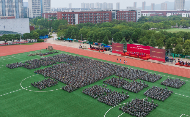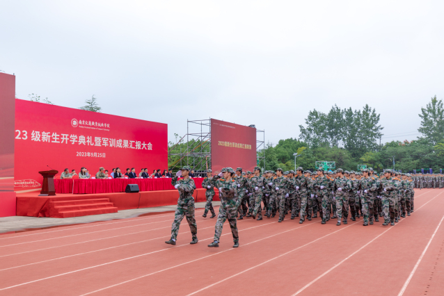 9月25日上午,2023级新生开学典礼暨军训成果汇报大会在田径场隆重举行。学院党委书记张毅,院长王道峰,党委副书记文爱民,纪委书记张徐刚,副院长刘雪芬、姜军,承训部队政治教导员、新生军训团团长戴鹏,组织部部长康建军,宣传部部长袁茜等领导出席大会并观看了汇报表演。二级院系主要负责同志、2023级大学生军训工作领导小组成员、军训团全体工作人员、全体教官、40余名新生家长代表以及4300余名参训新生参加大会。会议由学院副院长刘雪芬主持。