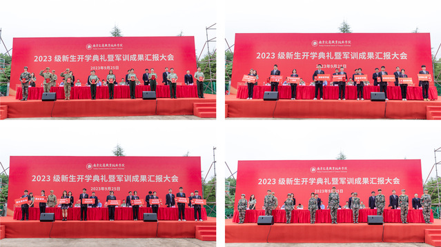文爱民副书记宣读了2023级新生军训先进集体和个人的表彰决定、院长奖学金表彰决定以及2022-2023学年省级以上学生获奖情况的通报。主席台领导为获奖先进集体和个人代表颁奖。