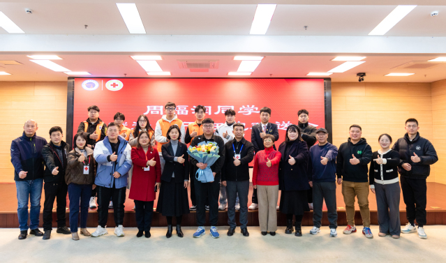 1月11日上午,学院在图书馆B203举行周福润同学捐献造血干细胞欢送会。学院副院长刘雪芬、南京市红十字会捐献服务部部长刘文华、江宁区红会党组书记、常务副会长吕华、团委及运输管理学院党总支负责人、师生代表和媒体记者共同参加了欢送会。
