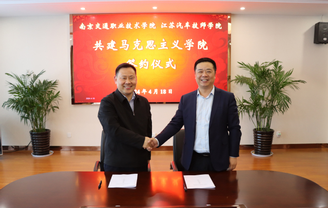 4月18日下午,南京交院马克思主义学院与江苏汽车技师学院马克思主义学院在扬州举行共建签约仪式。活动由江苏汽车技师学院党委委员、副院长邹新升主持。学院党委副书记文爱民,江苏汽车技师学院党委副书记、副院长戴良鸿以及双方马克思主义学院负责人、骨干教师代表参加共建活动。