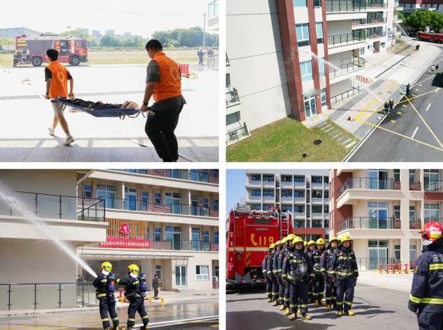 刘雪芬副院长宣布演练正式开始。伴随着烟雾的弥漫与消防自动警报声的响起,宿管人员立即拨打119报警电话同时向学院监控中心报警,在得到消防人员的指令后,校卫队员和义务消防队员立即按照预案赶赴现场开展救援和灭火,同时K组团师生立刻进入消防应急疏散演练状态。学生们打湿毛巾捂住口鼻、弯腰靠墙,在辅导员、宿舍管理人员的引导下,迅速有序地从最近出口撤离至室外安全地带,在疏散中受伤的学生由救护人员使用担架进行救护撤离。撤离后,值班辅导员清点人数,确保没有学生被困。随后,高新园消防救援中队为师生演示了消防车救援装备和消防水带的使用方法,并指导师生开展实际操作体验。自此,演练圆满完成。