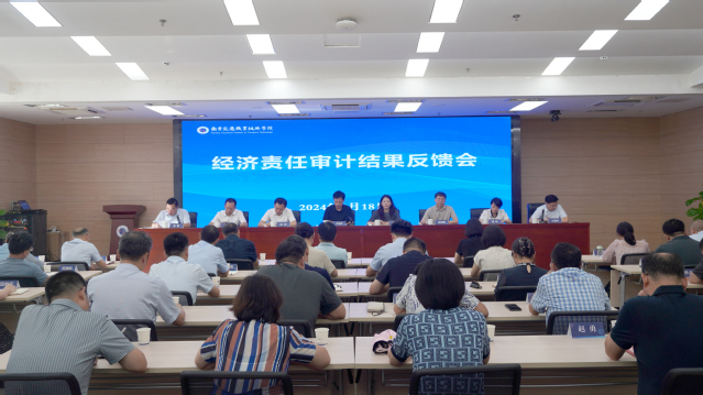 郭明芳代表审计组反馈审计结果。审计组报告指出,贾俐俐同志和张毅同志任期以来,在推动高职院校综合改革、建立健全重大经济决策和内控制度等方面较好地履行了经济责任。针对审计发现问题,希望学院严格落实方针政策,提升发展质量;强化内部管理,提高治理效能;优化资源配置,提振发展动力。