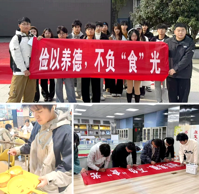 近日,后勤管理处举办了以“俭以养德,不负食光”为主题的光盘行动,旨在携手全校师生共同聚焦餐饮浪费现象,大力弘扬中华民族勤俭节约的传统美德,坚决抵制“舌尖上的浪费”,积极践行光盘行动,共同树立爱粮节粮的社会新风尚。