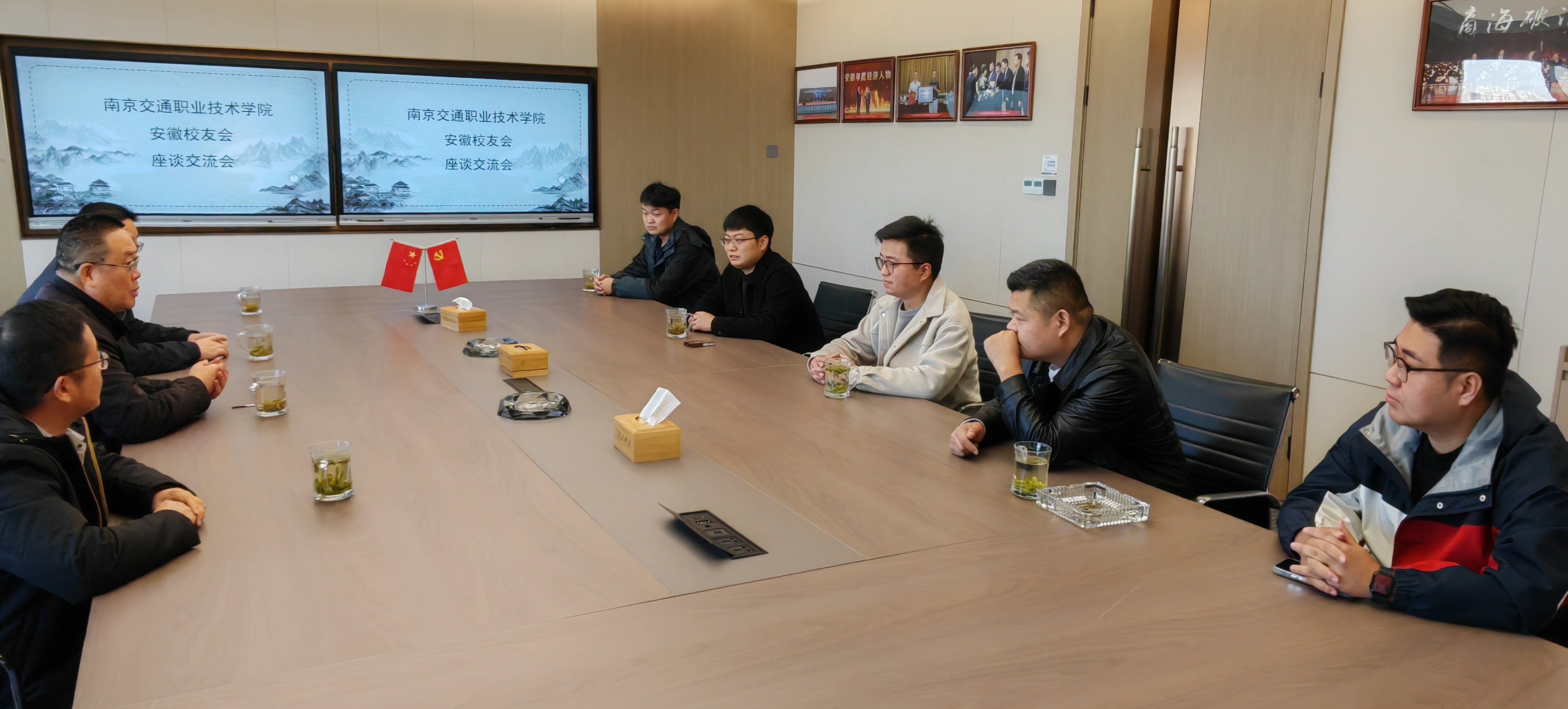 在集团会议室,安徽金鹏建设集团领导、安徽校友代表与母校老师进行座谈交流。金鹏建设集团营销总监、安徽校友会会长韩阔详细介绍了公司发展历程、运营管理、业务范围、企业荣誉等情况。在场的校友们逐一介绍了各自单位基本情况,回忆在母校的学习生活,对学院的专业建设、实习就业、校办企业的运营、校友会工作等提出了很好的建议,对安徽校友会2025年工作进行了规划。