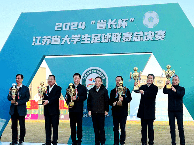 12月8日,2024“省长杯”江苏省大学生足球联赛总决赛暨闭幕式在南京农业大学滨江校区举行,省长许昆林,副省长夏心旻、赵岩出席闭幕式。省教育厅厅长、党组书记、省委教育工委书记江涌为我校颁发冠军奖杯(高职高专女子组),校党委书记张毅代表学院接受领导颁奖。体育部党政负责人带队参加。