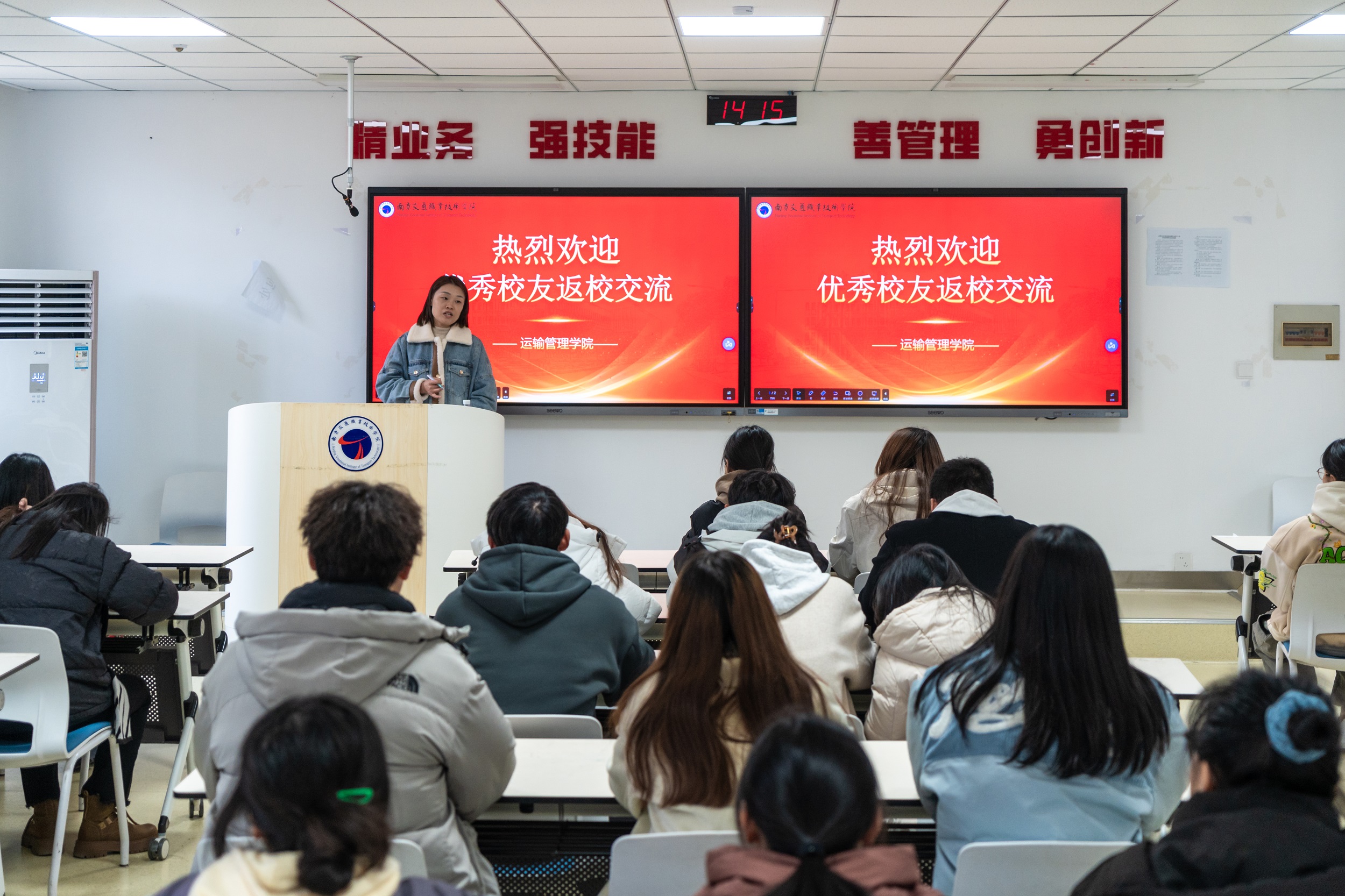 尹江伟校友分享了毕业后在一家公司深耕十六年的感悟。进入仓储一线仓库工作,慢慢才找到职业发展道路,现在HR的岗位上站稳脚跟。她建议学弟学妹们,不要怕吃苦,进入一线掌握业务,找准擅长领域,确定好目标后稳扎稳打。要牢记理论和实际相结合,知行合一的校训精神。