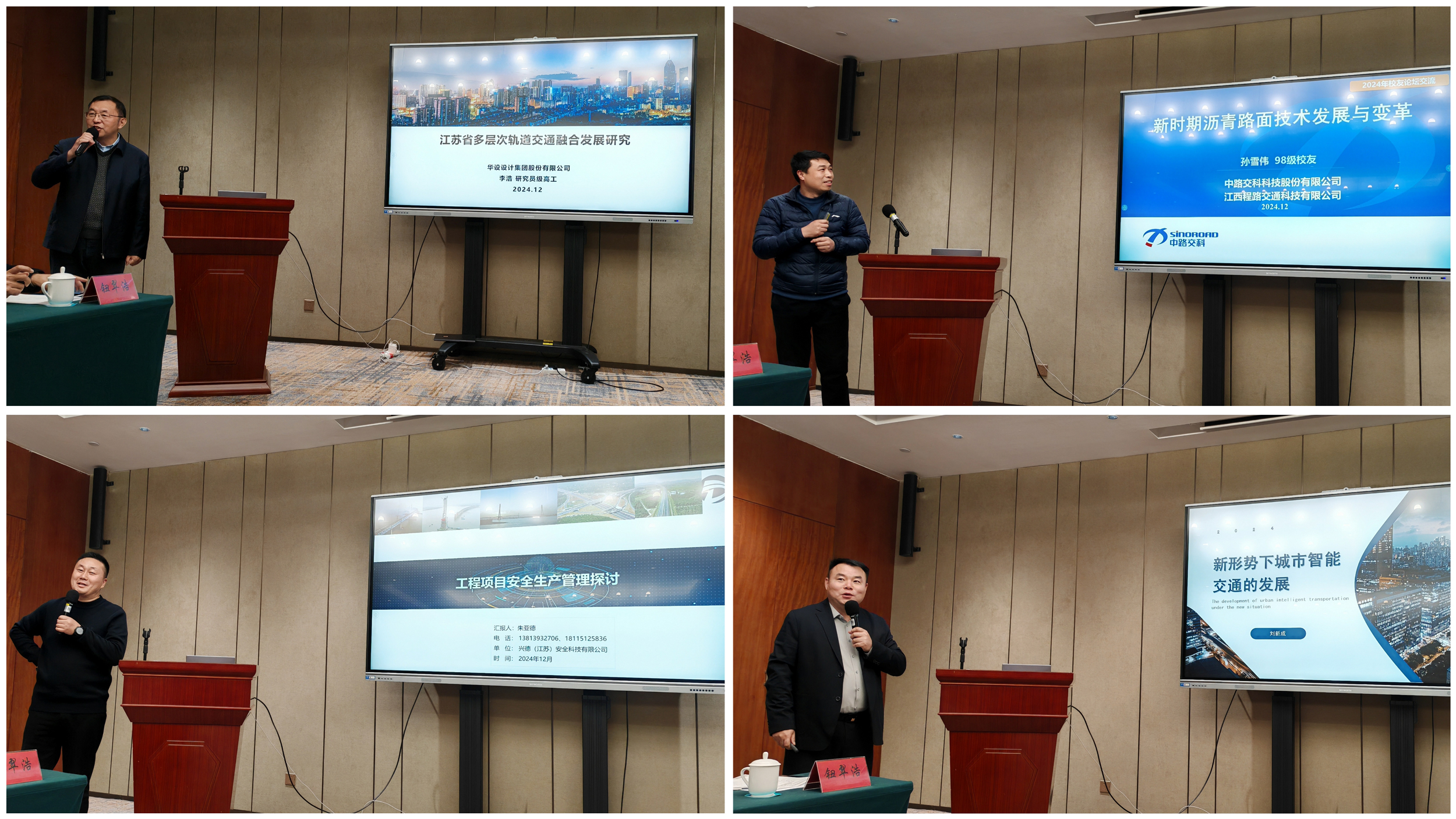 在校友论坛环节,4位校友围绕本职工作和专业前沿作了专题汇报。华设集团总工程师李浩围绕“江苏省多层次轨道交通融合发展”作专题讲座;江西赣粤中路交通科技有限公司与江西程路交通科技有限公司总经理孙雪伟,就“新时期沥青路面技术发展与变革”进行深入探讨;兴德(江苏)安全科技有限公司总经理朱亚德发表了关于“工程项目安全生产管理探讨”的独到见解;苏州博宇鑫交通科技有限公司董事长刘新成,带来了“新形势下城市智能交通的发展”的主题分享。4位专家的讲座内容丰富、信息量大、观点新颖,为与会者提供了前沿的行业信息,引发深刻思考,成为此次活动的亮点。