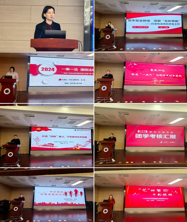会上,7个院系党总支副书记结合学生发展的实际需求,分别从社区建设、安全教育、学风建设、队伍建设、资助育人、美育育人等多个维度,全面汇报了本院系在2024年学生工作中的特色做法与突出成效。汇报内容从立德树人任务的落实到全方位育人体系的构建,从精准思政的价值引领到学科特色与学生工作的深度融合,有效实现了学生个性化发展与三全育人的有机统一,形成了一批具有示范意义的品牌活动和育人模式,为推动学生工作高质量发展注入了源源不断的动力与活力。