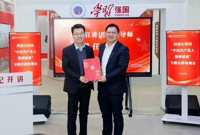 为扎实推进新时代立德树人工程建设,助力学校思政宣讲工作取得实效,近日,学院聘任南京航空航天大学博导徐川教授为明德宣讲团特邀导师,王道峰院长为徐川教授颁发了聘书。